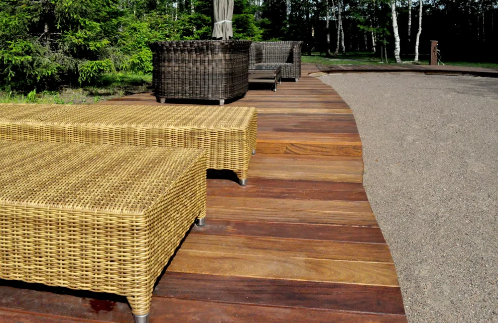 Если вам нужна не просто террасная доска, а материал с феноменальной стойкостью, обратите внимание на кумару. Эта бразильская порода, известная как «железное дерево», создана природой для эксплуатации под открытым небом. Мы предлагаем купить доску кумару для проектов, где важна абсолютная надежность: настилов у бассейна, дорожек на пляже, причалов и открытых террас. Цена кумару полностью оправдана его сроком службы, измеряемым десятилетиями.